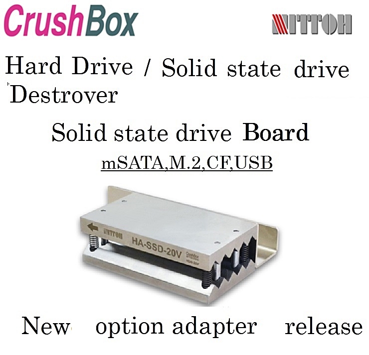 Nittoh Zohki’s Crush Box can completely destroy the medias such as hard disc drives, SSD, magnetic tapes and mobile phones to protect leaking your data.
